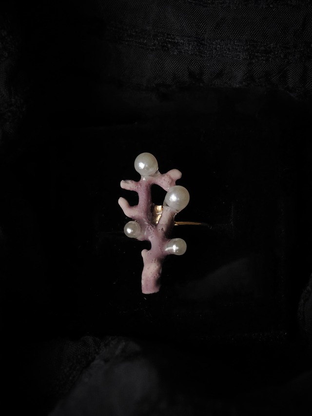貝殻やフジツボを使い オブジェを仕立てるように、アクセサリーを作りました。 森を歩き、足元の小さな世界を覗いていると、 ふと海の中の景色と重なることがあります。 珊瑚のようなきのこ。イソギンチャクのような粘菌。 その間をゆっくりと進むカタツムリもまた、「陸貝」。貝の仲間です。 森の景色の中に、遠い海を重ねて。 ミクロコスモスを閉じ込めたアクセサリーシリーズです。 サイズ:約w2cm×h2.3cm リングサイズ:フリーサイズ(最少サイズ約9号のものを使用) リングパーツ素材:真鍮、電気メッキ