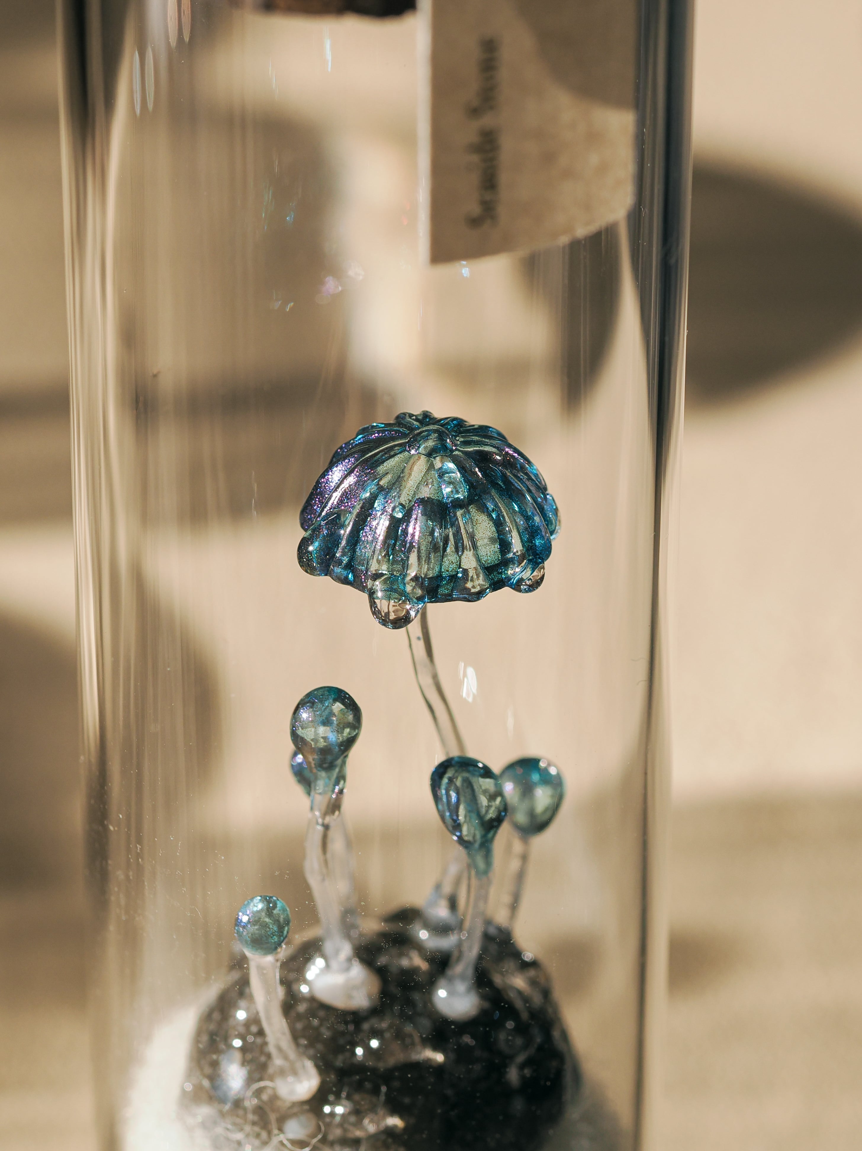 菌類をモチーフとした造形を施したオブジェを制作しています。