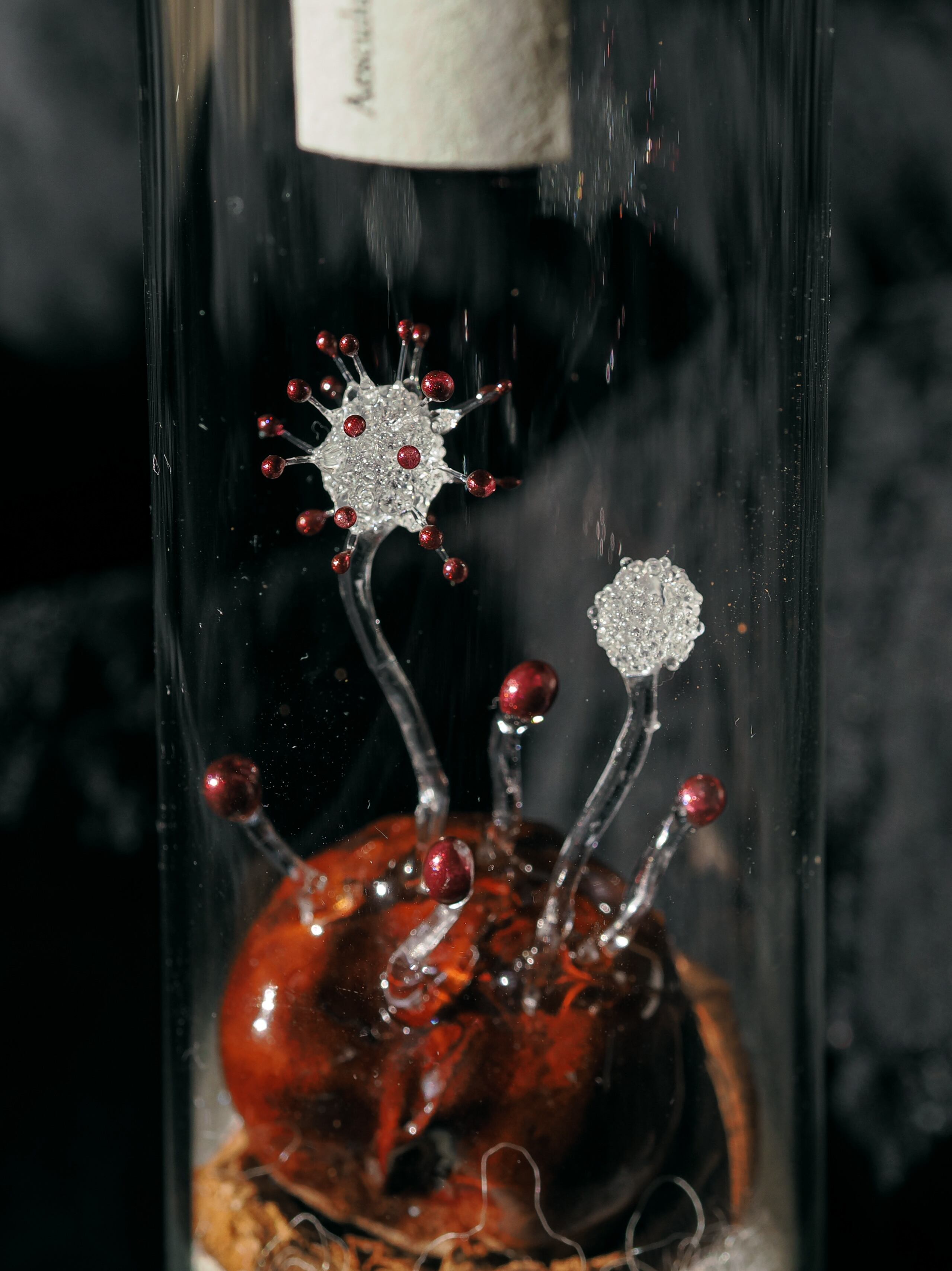 菌類をモチーフとした造形を施したオブジェを制作しています。