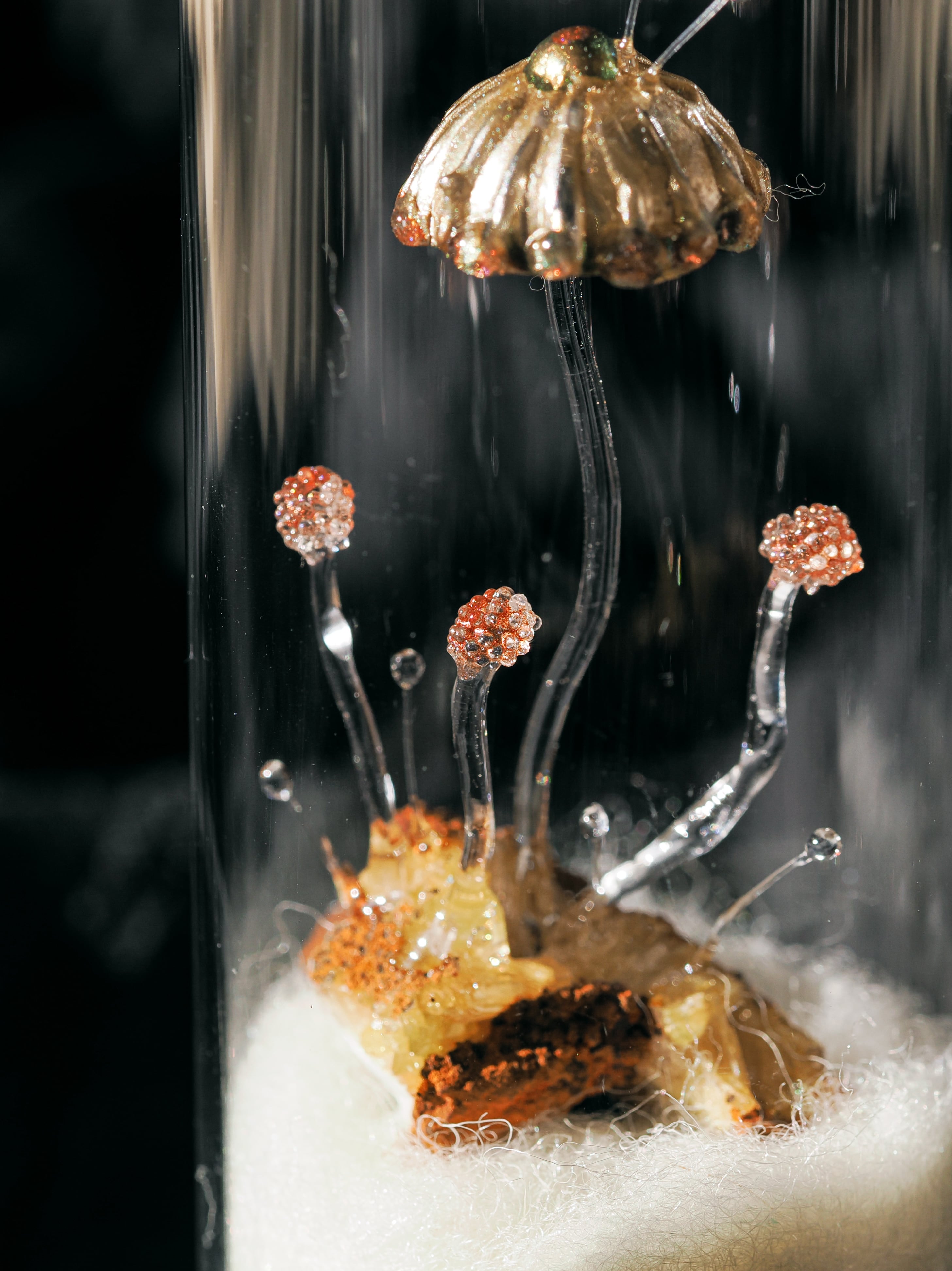 菌類をモチーフとした造形を施したオブジェを制作しています。