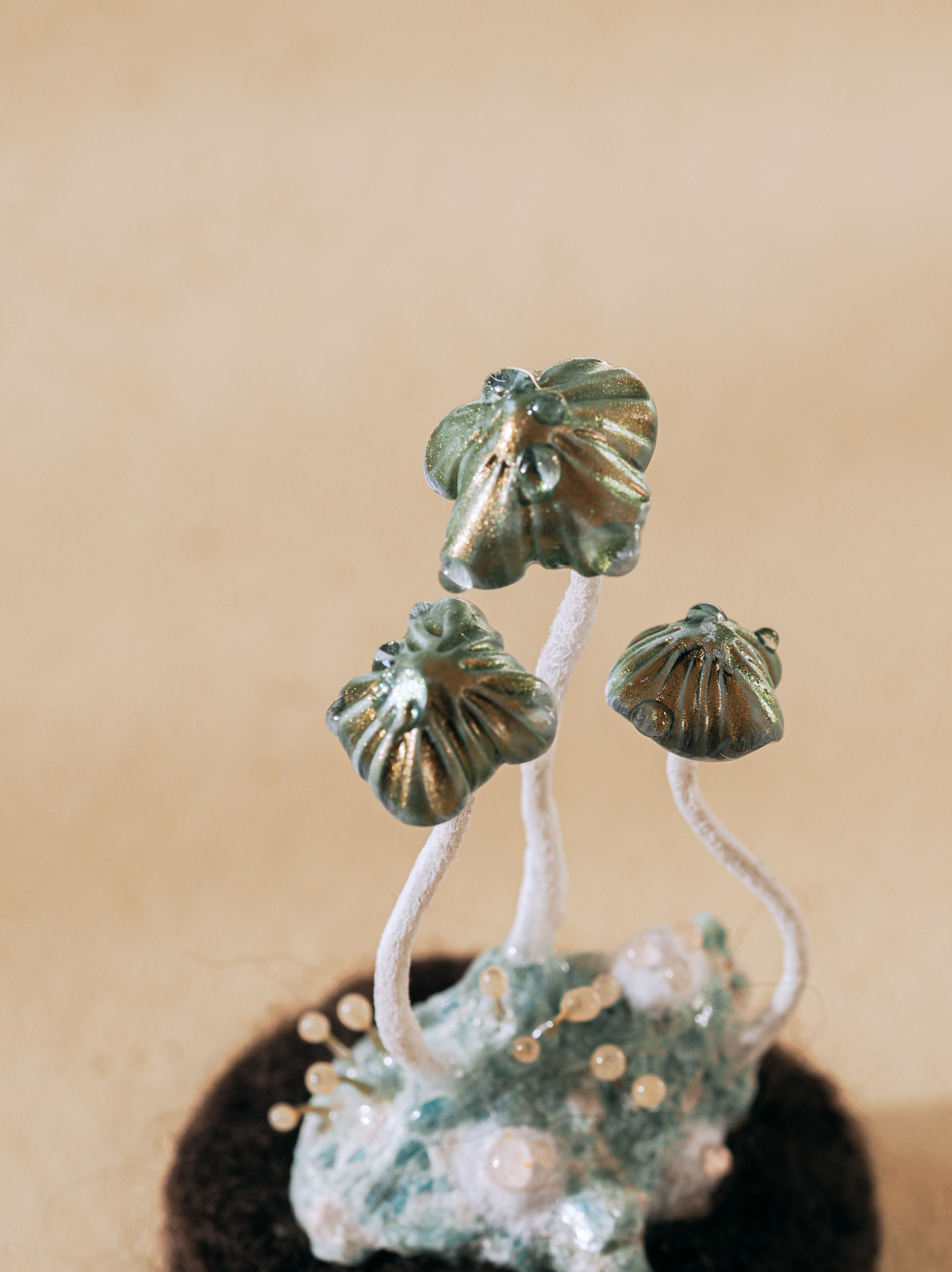 菌類をモチーフとした造形を施したオブジェを制作しています。