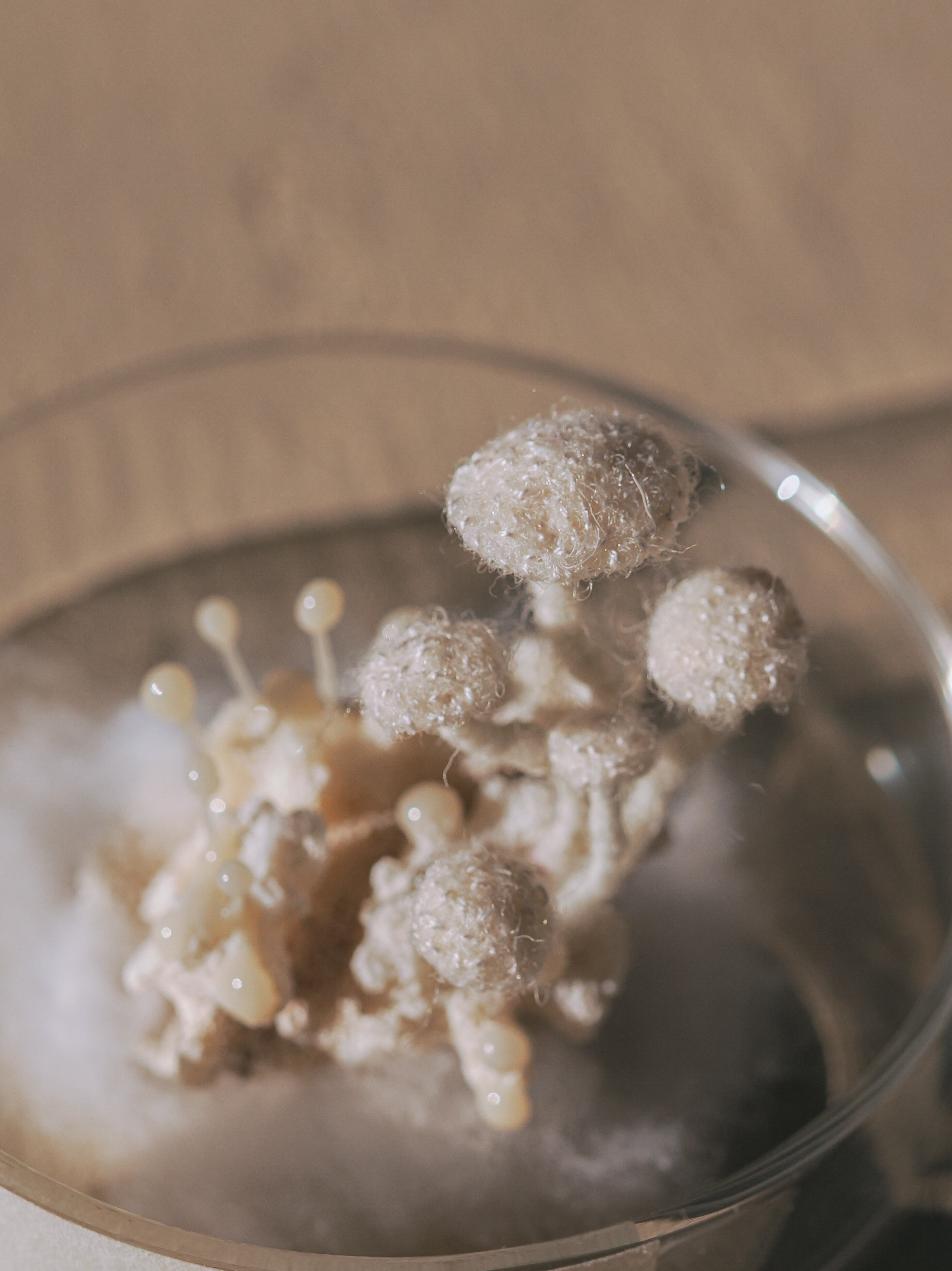 菌類をモチーフとした造形を施したオブジェを制作しています。